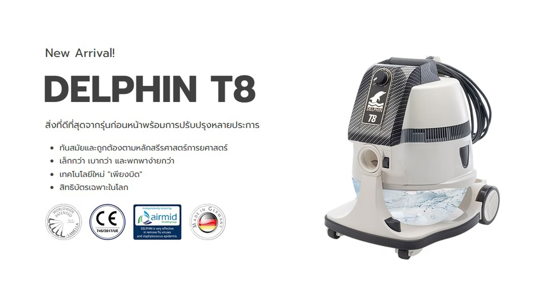เครื่องดูดไรฝุ่น DELPHIN T8 คือเครื่องมือทำความสะอาดที่ทันสมัยและเต็มไปด้วยประสิทธิภาพ ด้วยการใช้เทคโนโลยีที่ล้ำสมัย และการออกแบบที่ใช้งานง่าย DELPHIN T8 ไม่เพียงแต่ช่วยให้บ้านของคุณสะอาดปลอดภัยจากไรฝุ่น แต่ยังสร้างอากาศที่บริสุทธิ์และสุขภาพดีขึ้นในทุกวัน